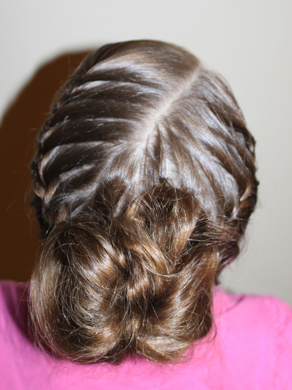 Add the 2 braids together in the middle back of her head shown below.